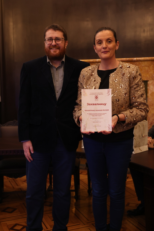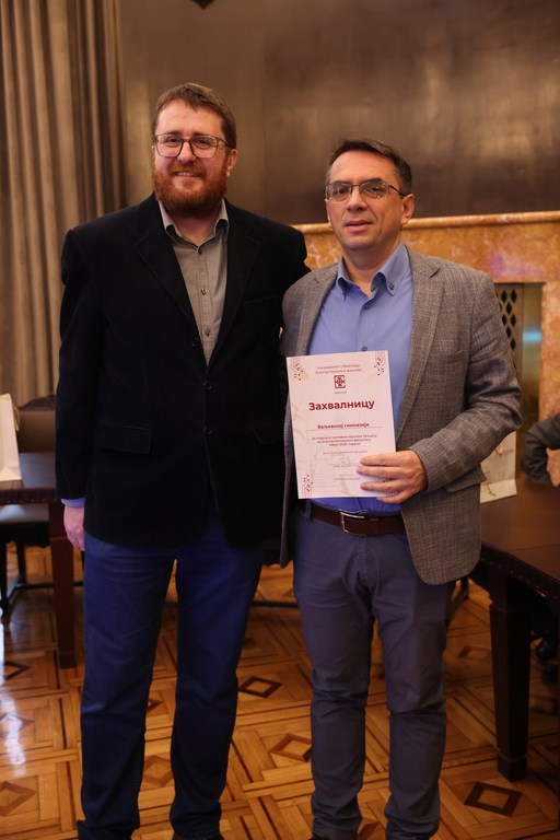 Присутни представници следећих средњих школа добили су захвалницу нашег Факултета за подршку наставно-научном процесу: